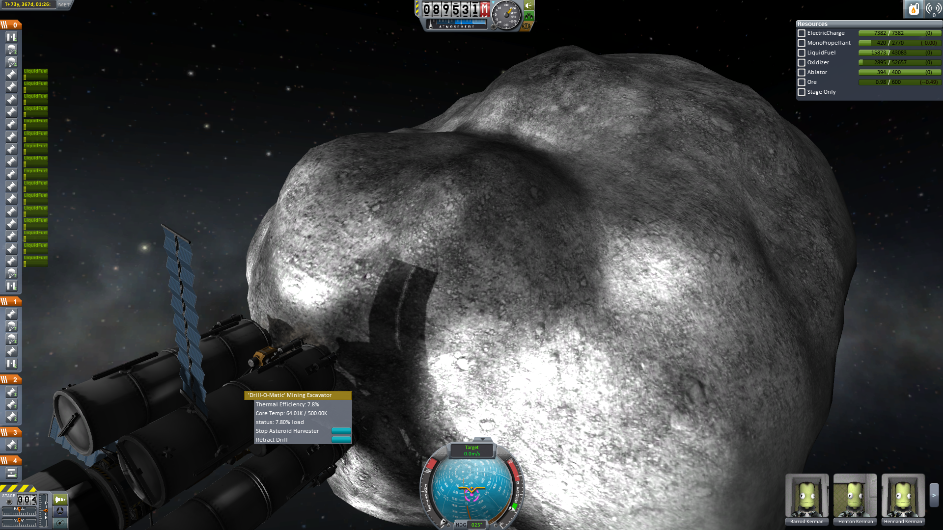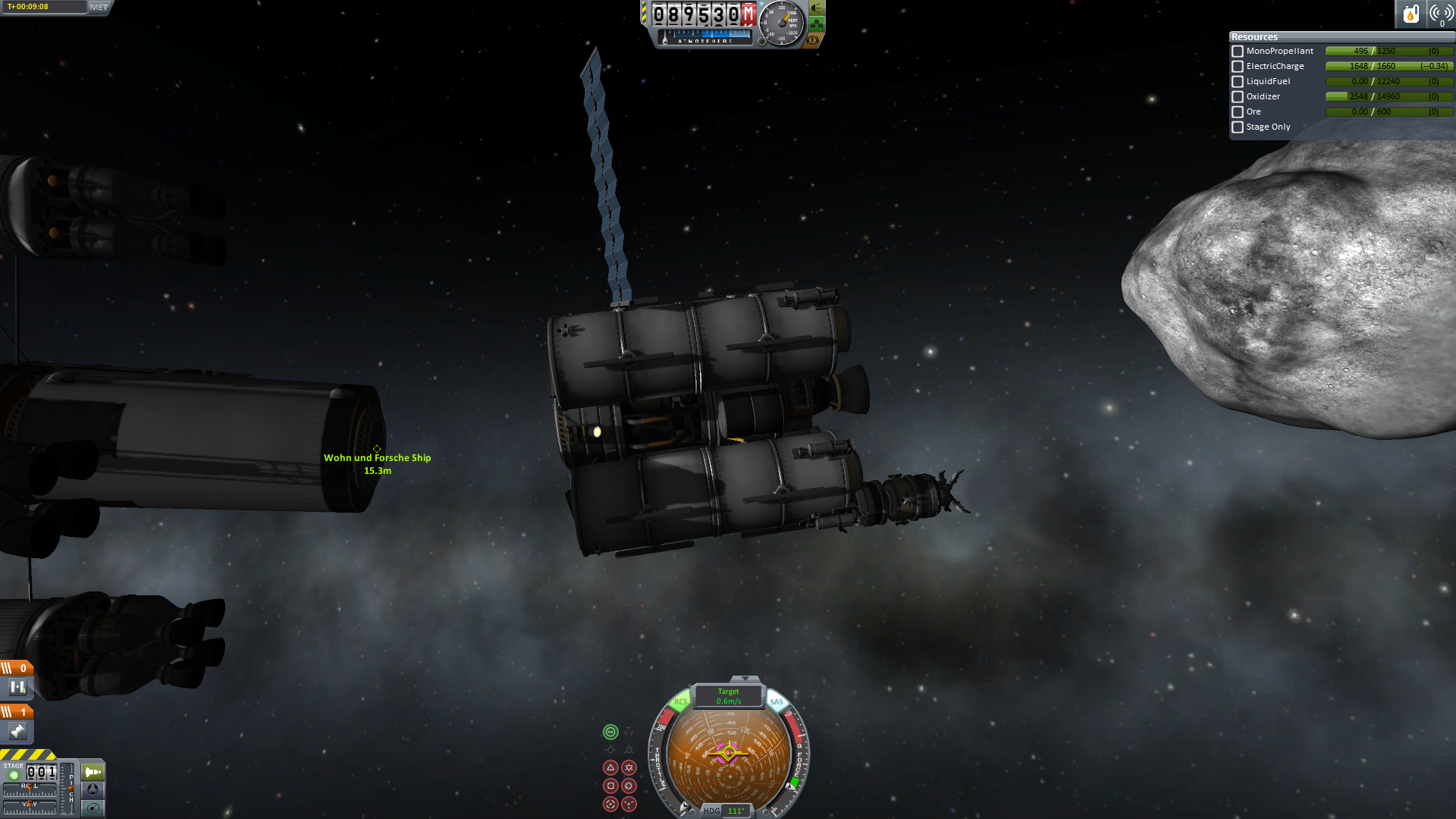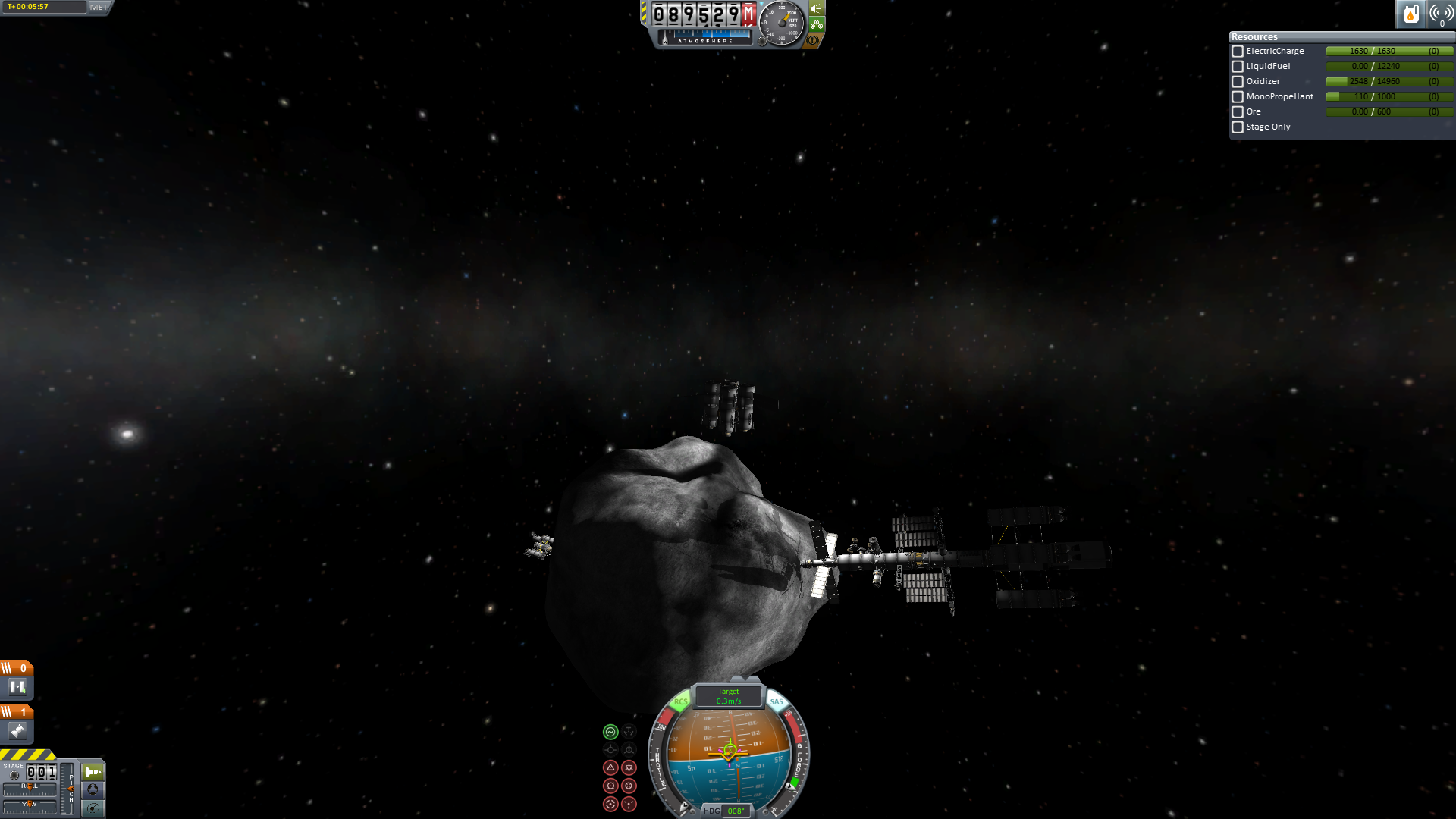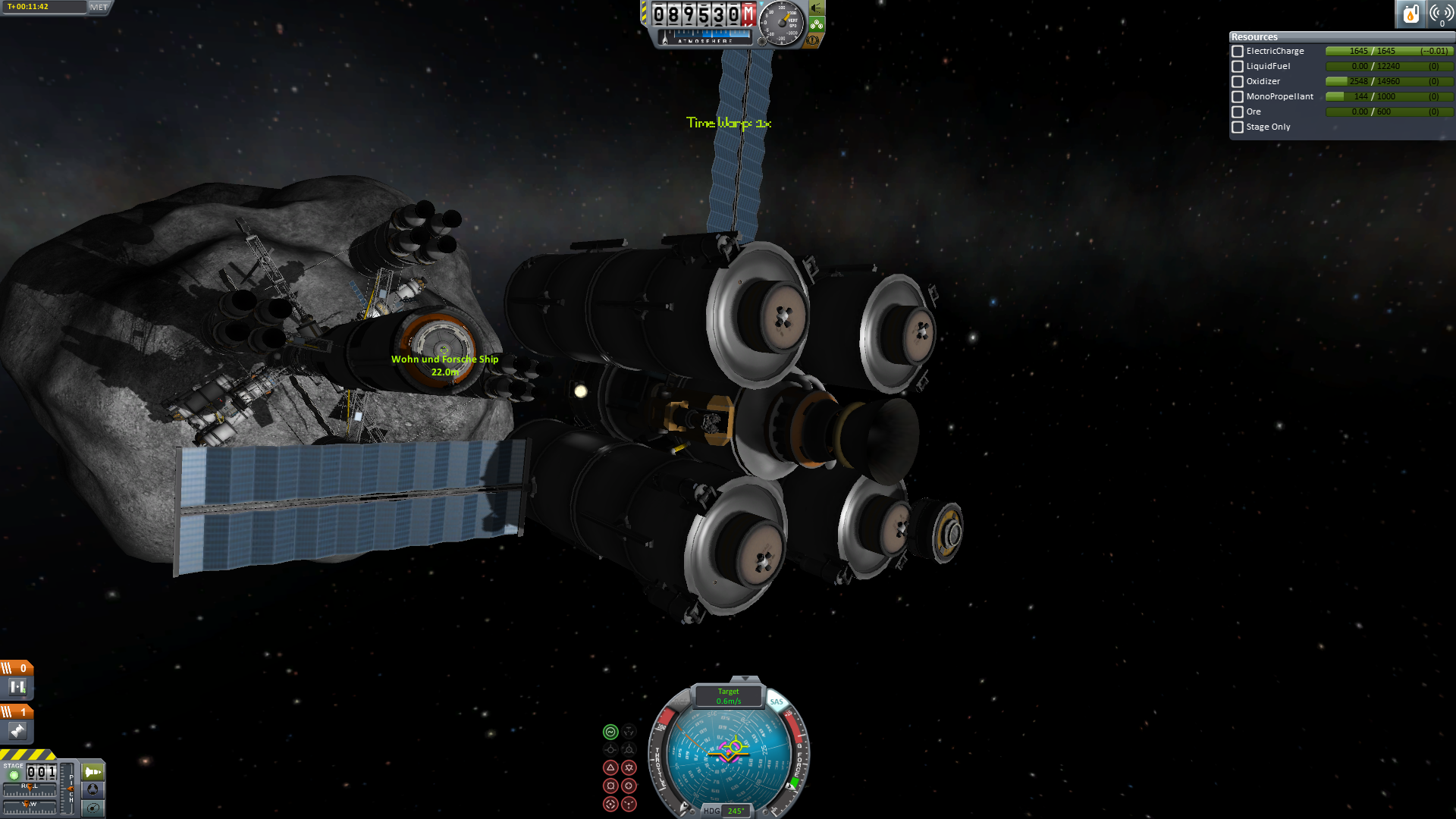 Nun wurde rückwärts angedockt und es konnten endlich Ressourcen gefördert werden. Praktischer Weise musste nun nicht mehr gedockt werden. Da der Ressourcenlander ja bereits am Mutterschiff hing.