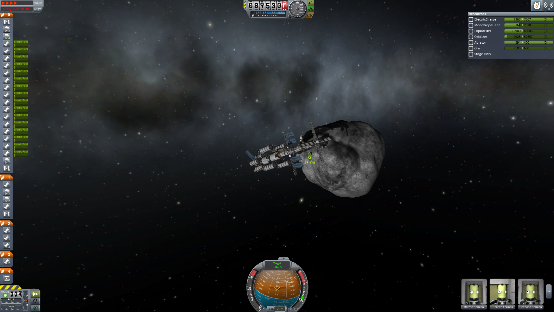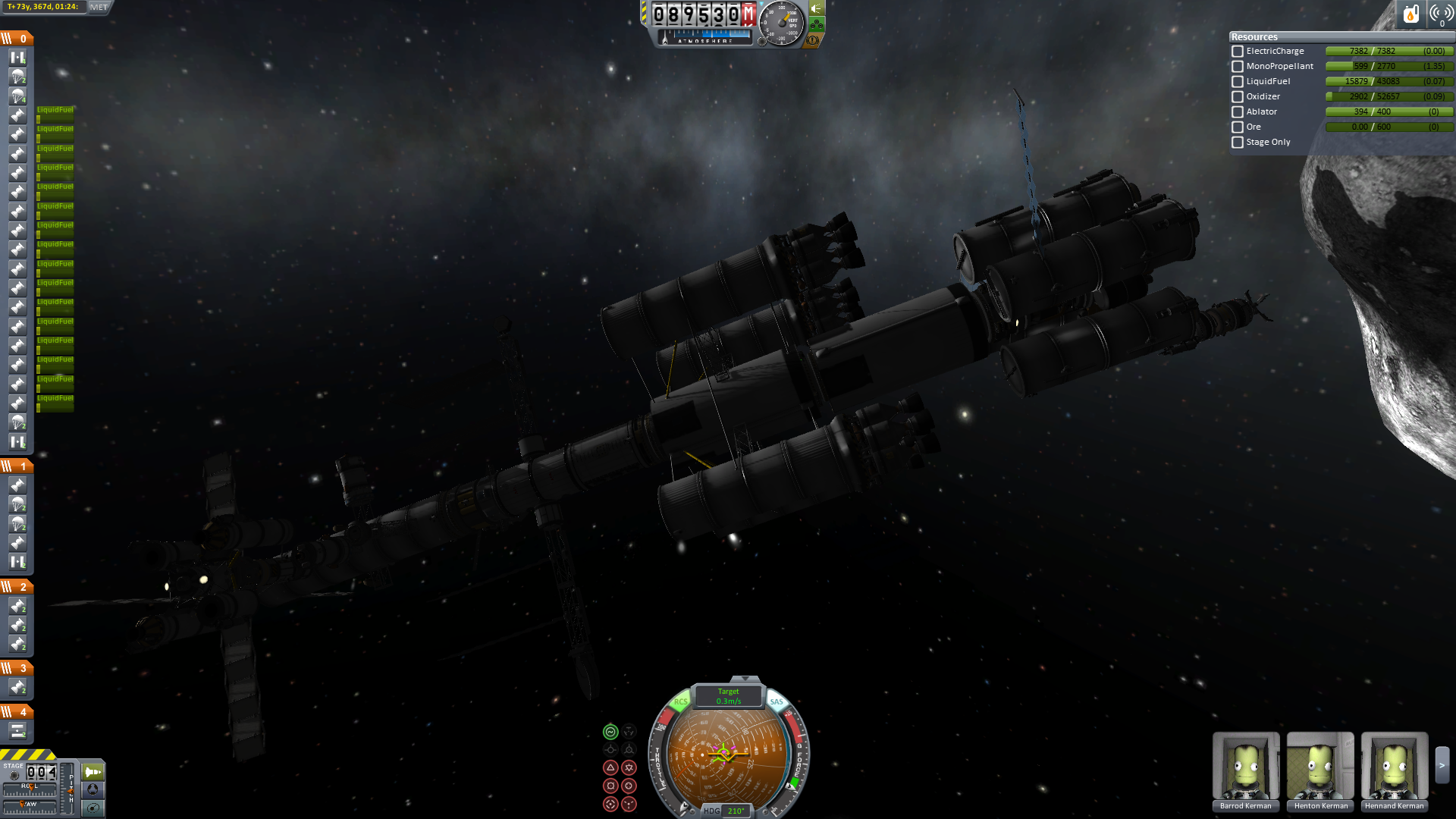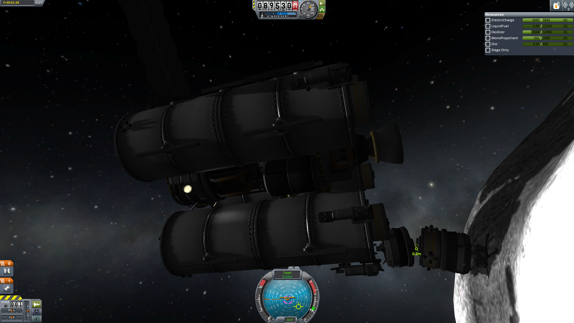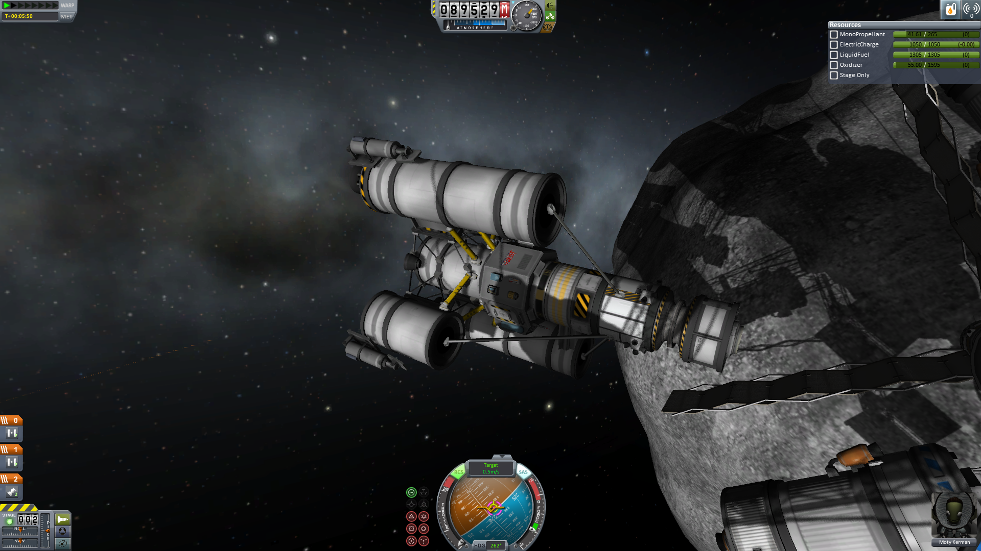Nun wurde rückwärts angedockt und es konnten endlich Ressourcen gefördert werden. Praktischer Weise musste nun nicht mehr gedockt werden. Da der Ressourcenlander ja bereits am Mutterschiff hing.