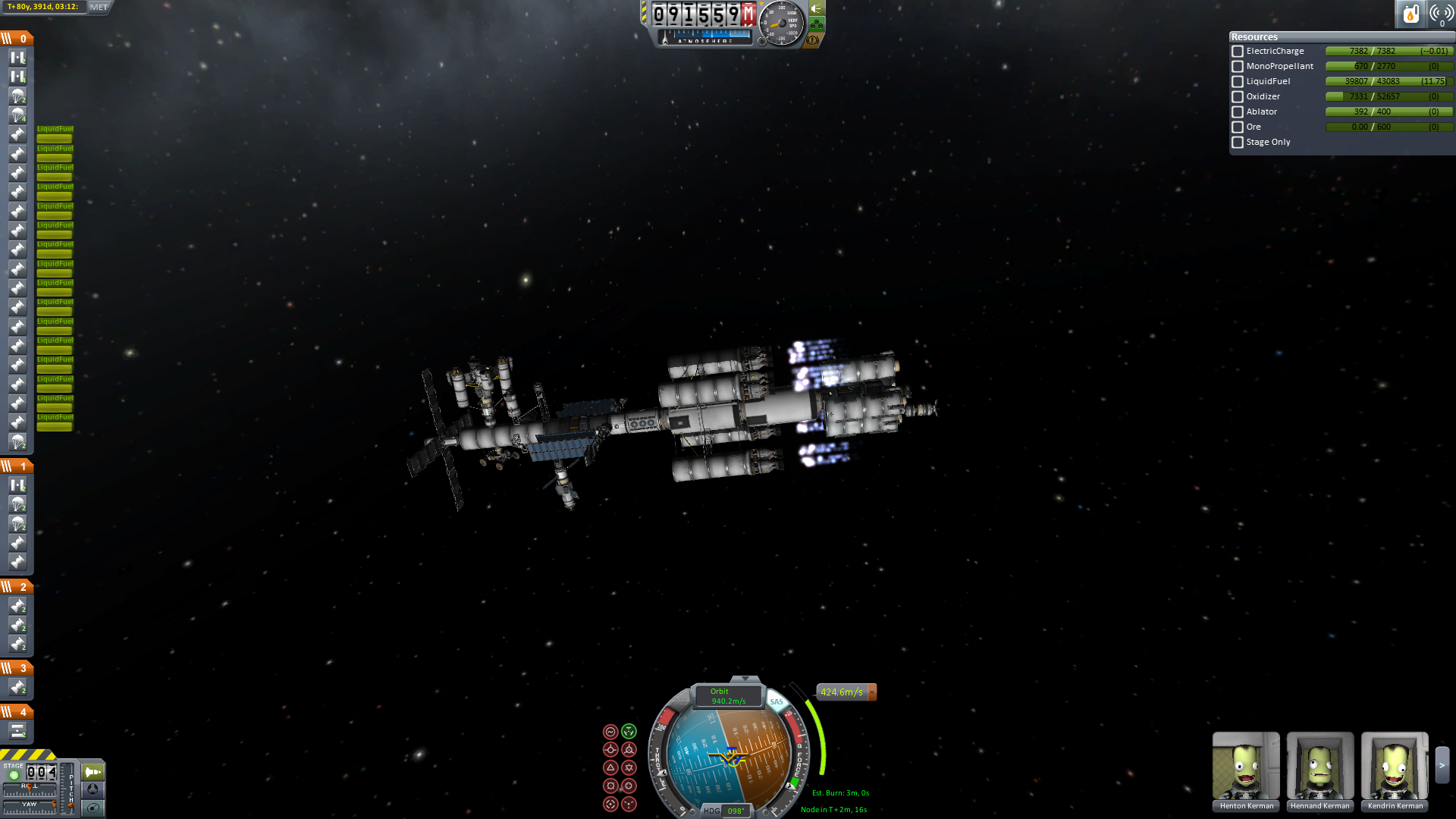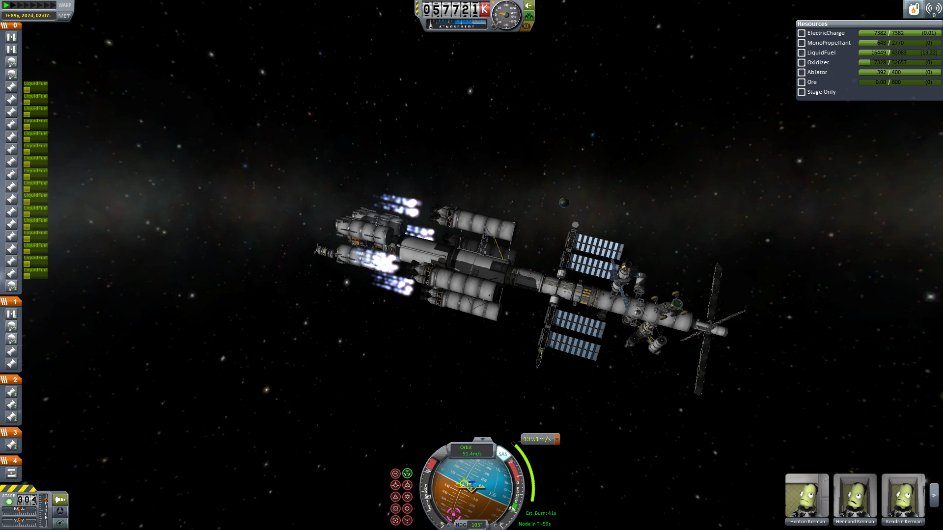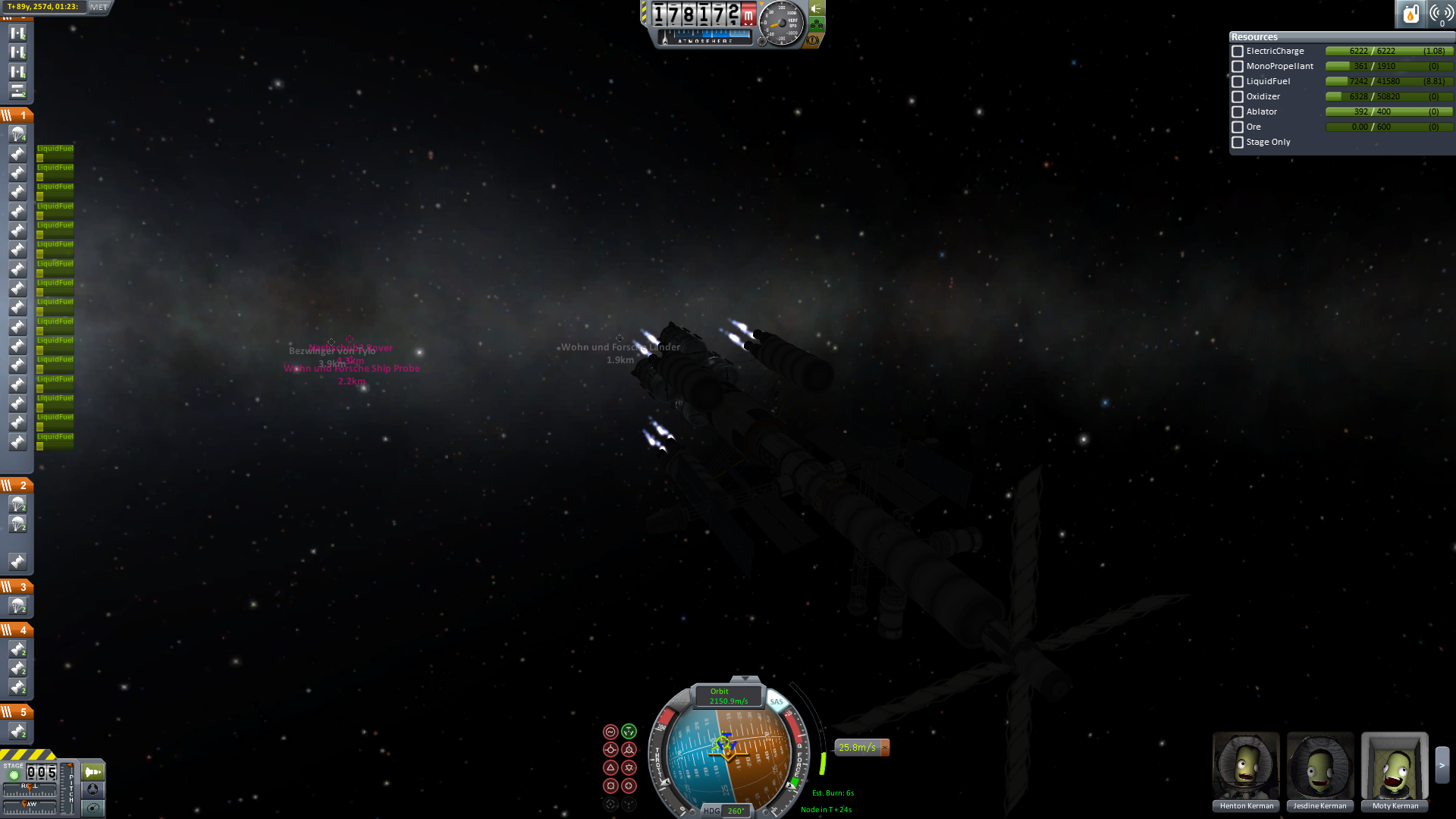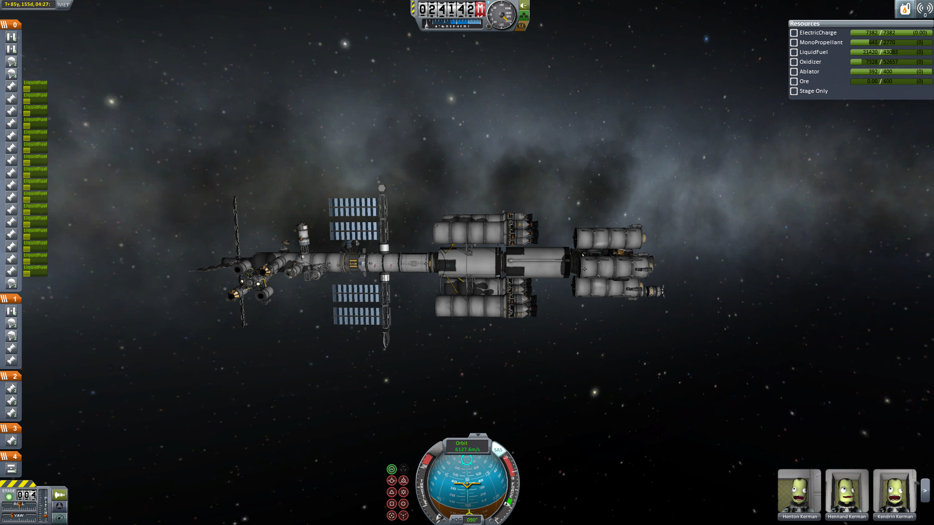 Nun wird es für alle Crewmitglieder Zeit in das Wohnmodul umzusteigen. Alles was nicht wirklich fest am Schiff verankert wird, wird abgetrennt und schließlich schwenkt man in den finalen Orbit ein.