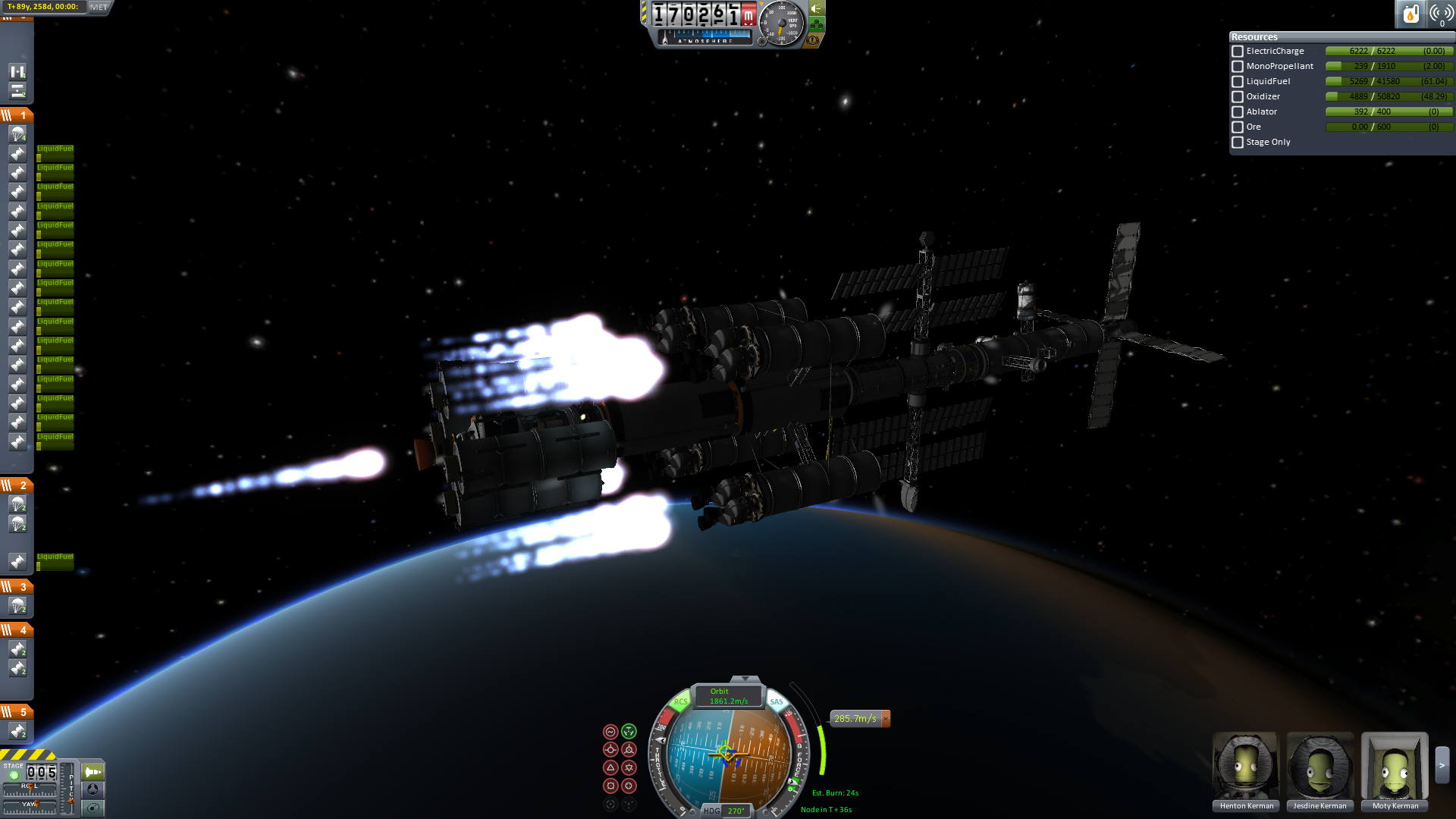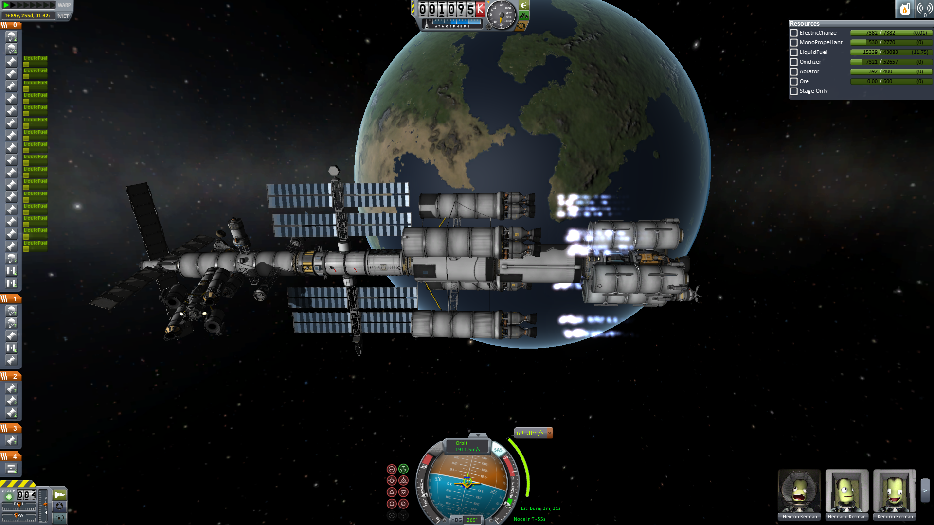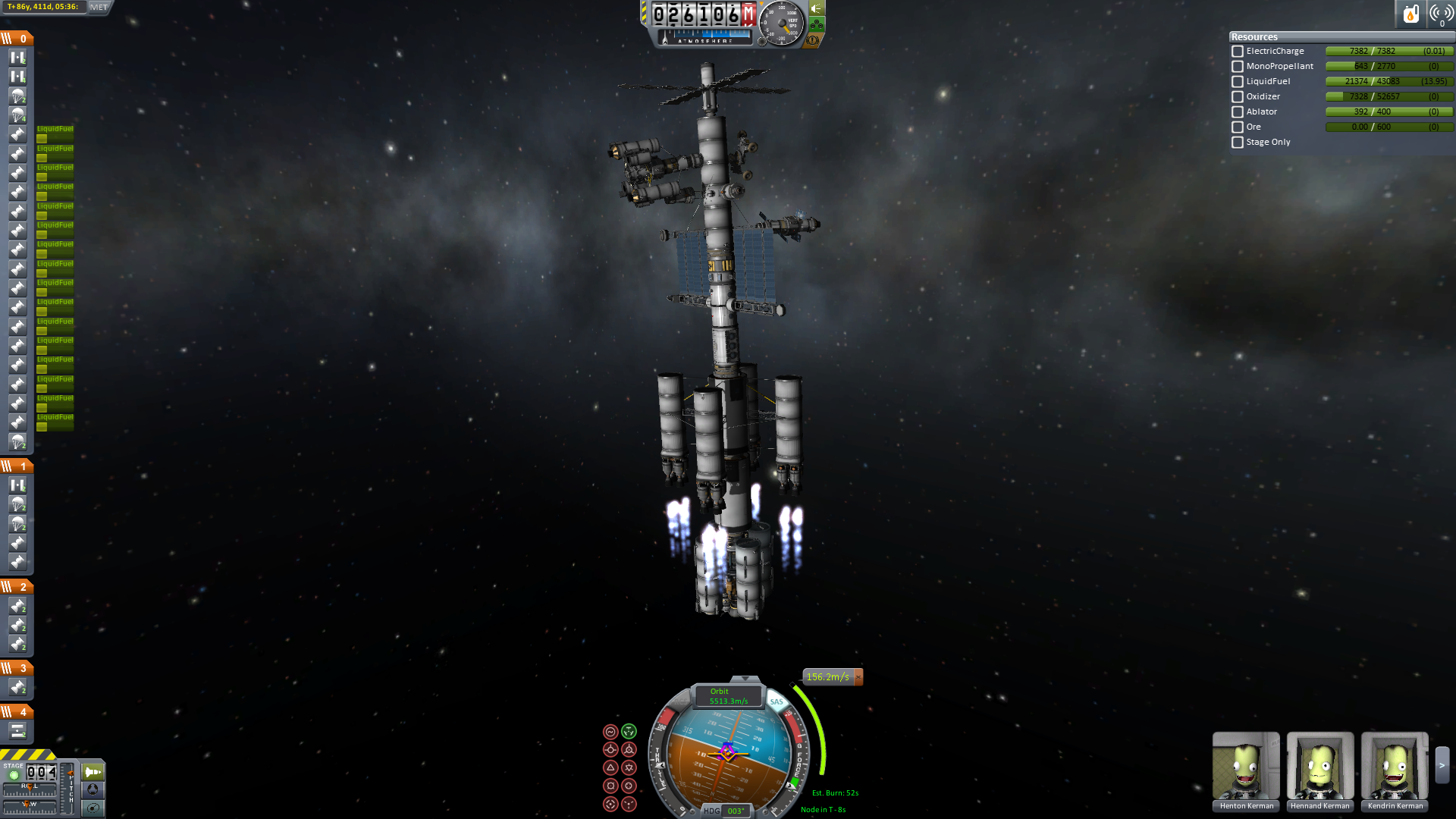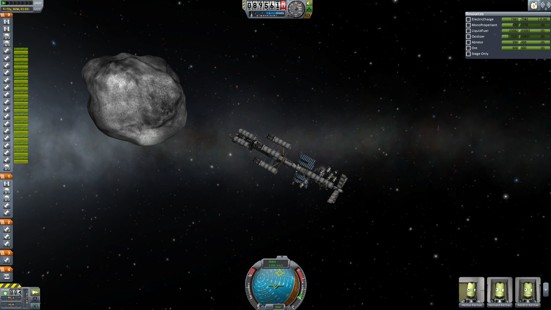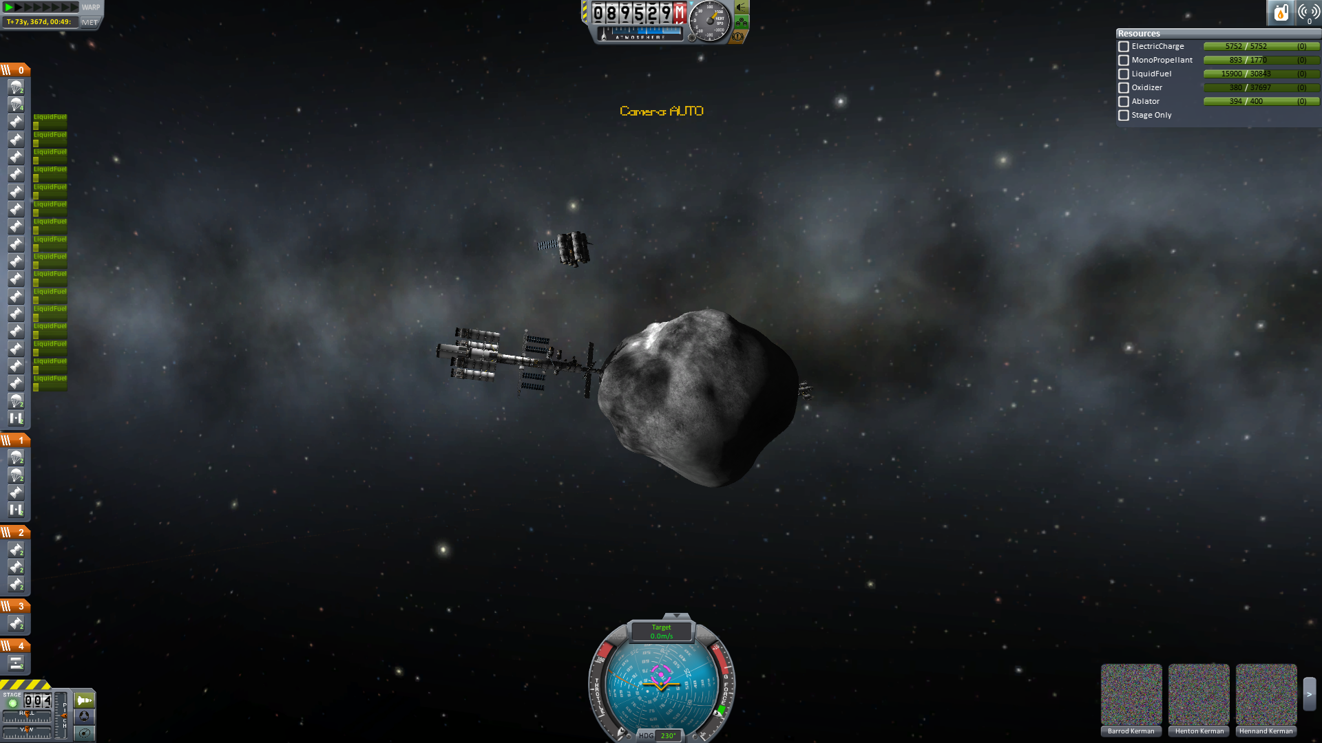 Nun wird es für alle Crewmitglieder Zeit in das Wohnmodul umzusteigen. Alles was nicht wirklich fest am Schiff verankert wird, wird abgetrennt und schließlich schwenkt man in den finalen Orbit ein.
