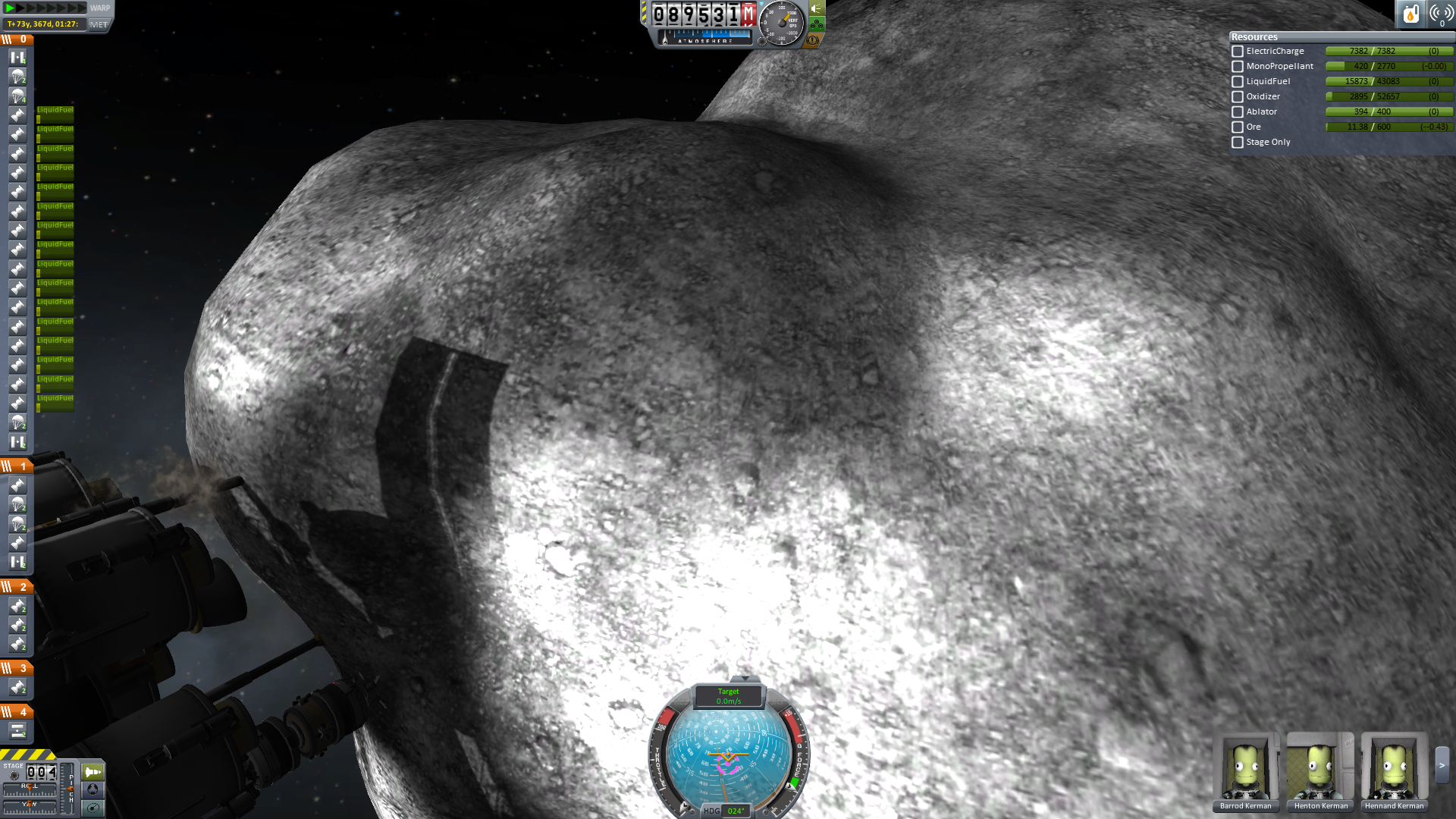 Leider hat das Navigationssystem verrückt gespielt. Da langsam der Treibstoff knapp wird und die Marketingabteilung der Überzeugung ist, dass die alten Bilder okay wären, muss auf den Ausflug nach Minimus verzichtet werden.Dafür gibt es einen Ausflug zum Mun!