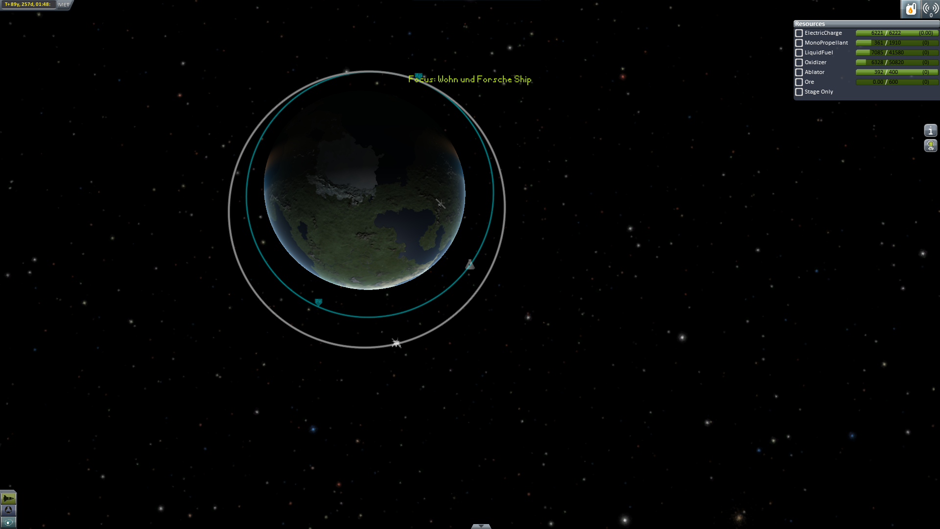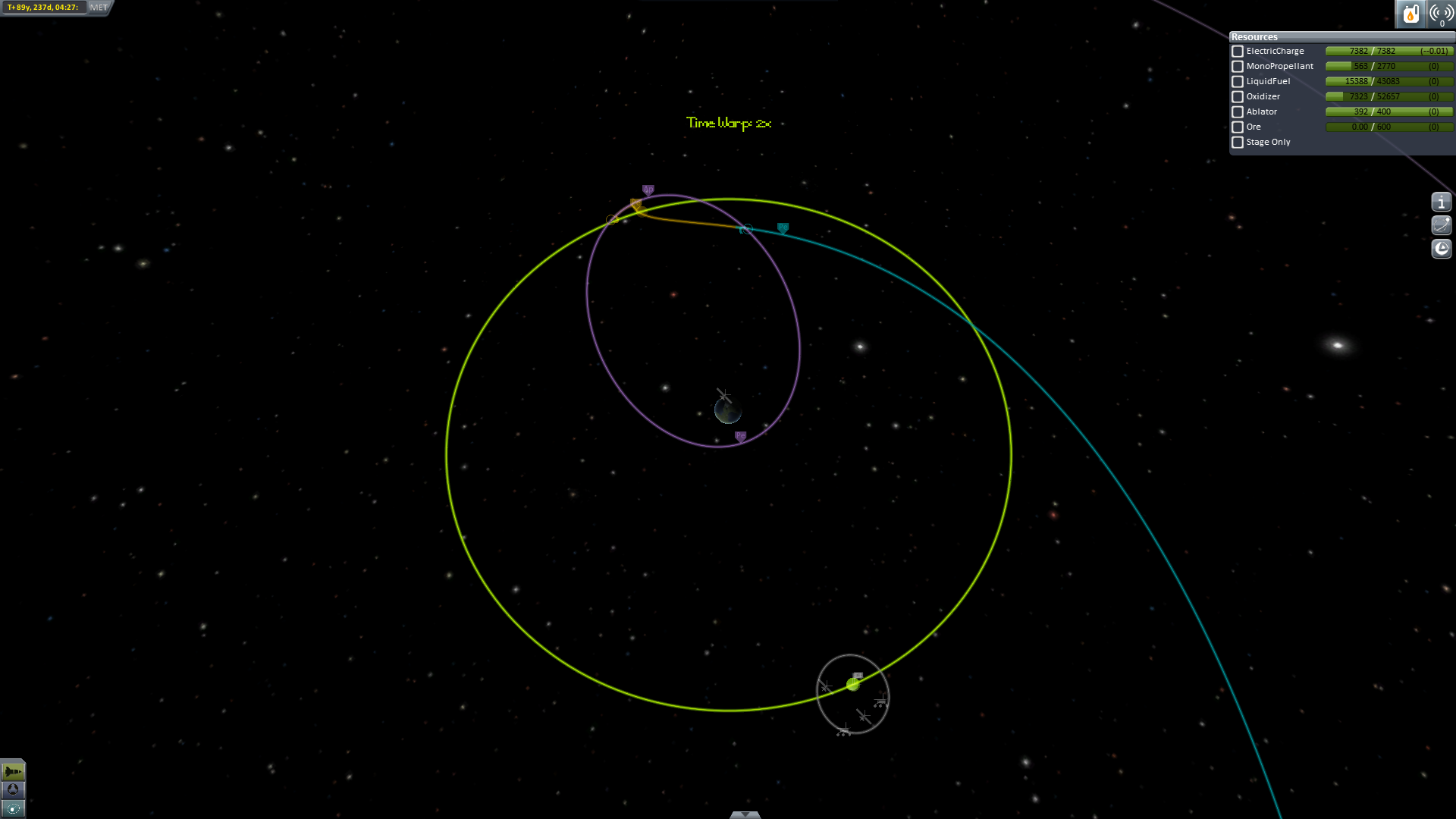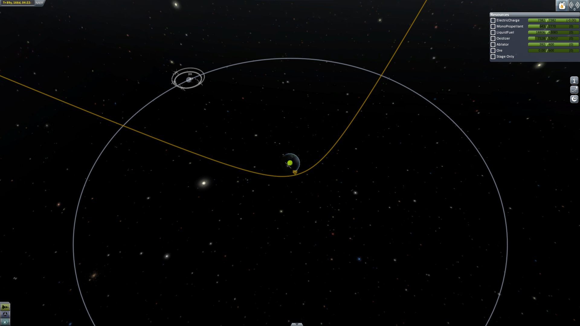 Nun geht es aber wirklich heim. Um Sprit zu sparen (und wegen der tollen Aussicht) wird ein Swing-By an Eve durchgeführt. -