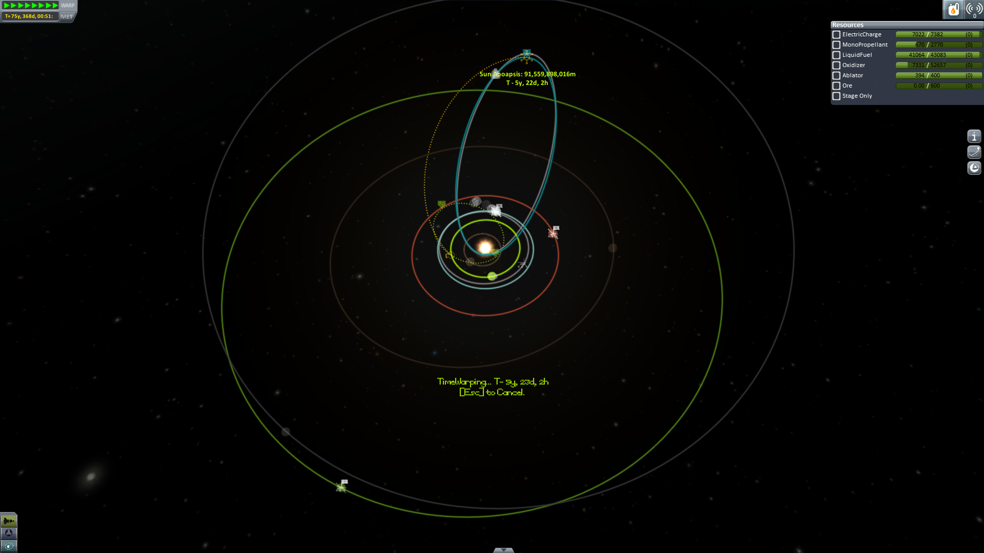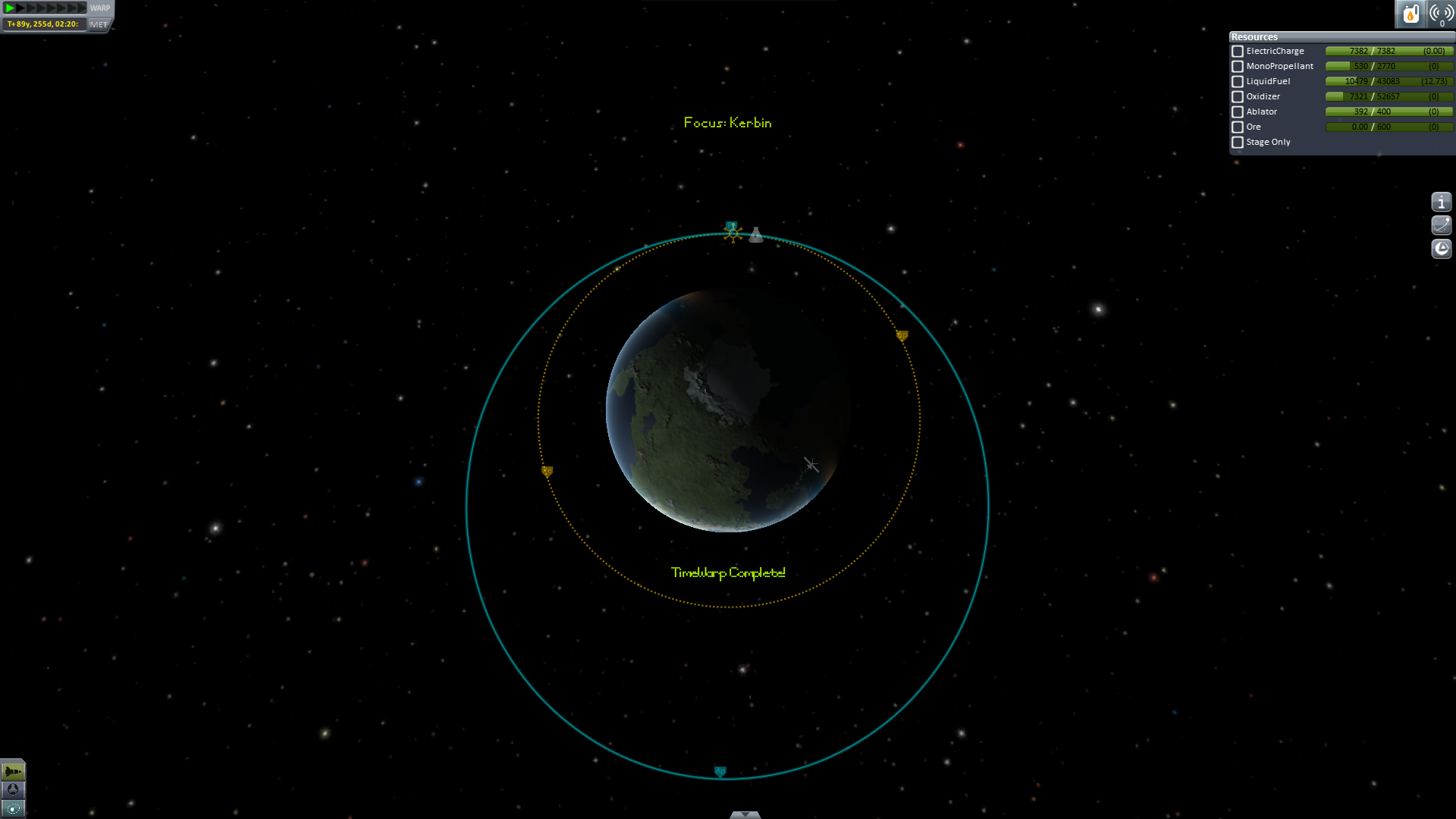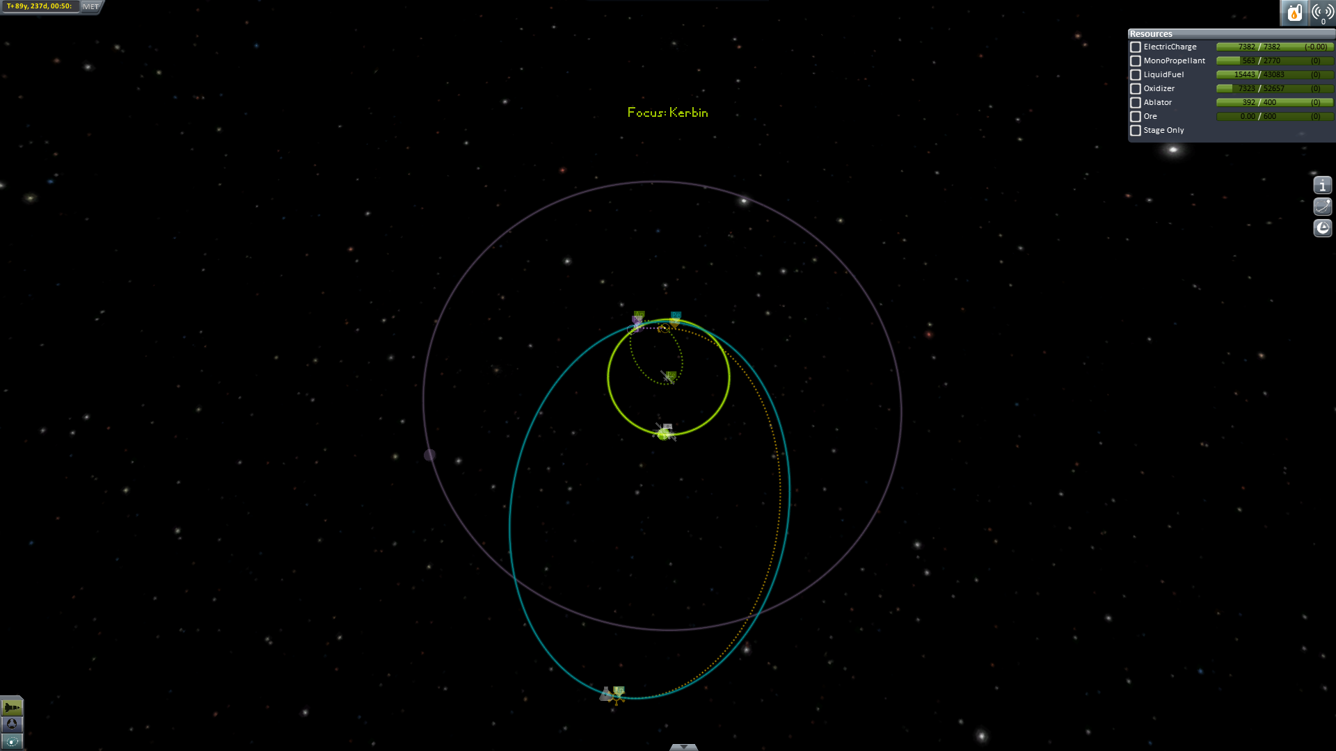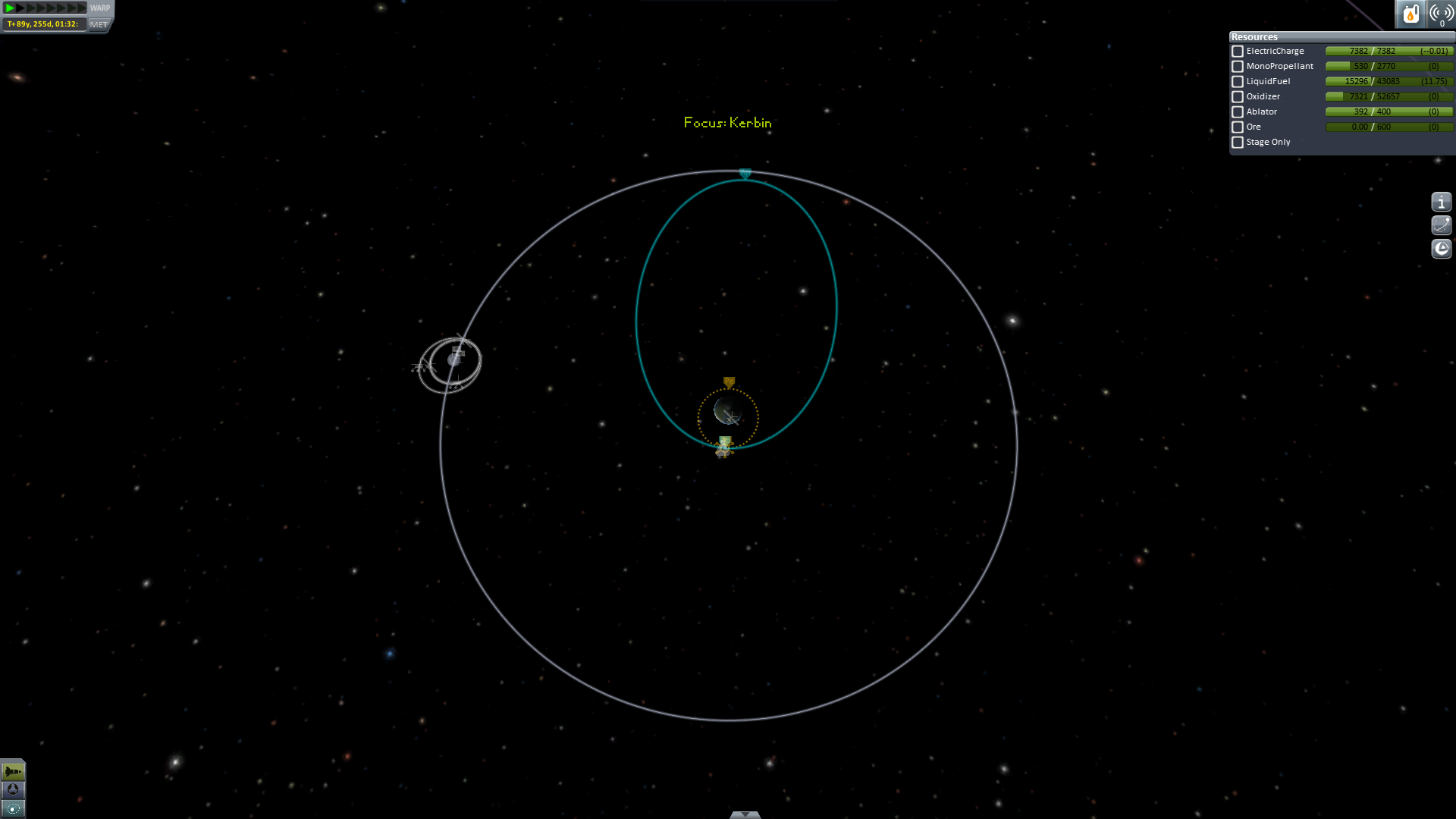 Nun geht es aber wirklich heim. Um Sprit zu sparen (und wegen der tollen Aussicht) wird ein Swing-By an Eve durchgeführt. -