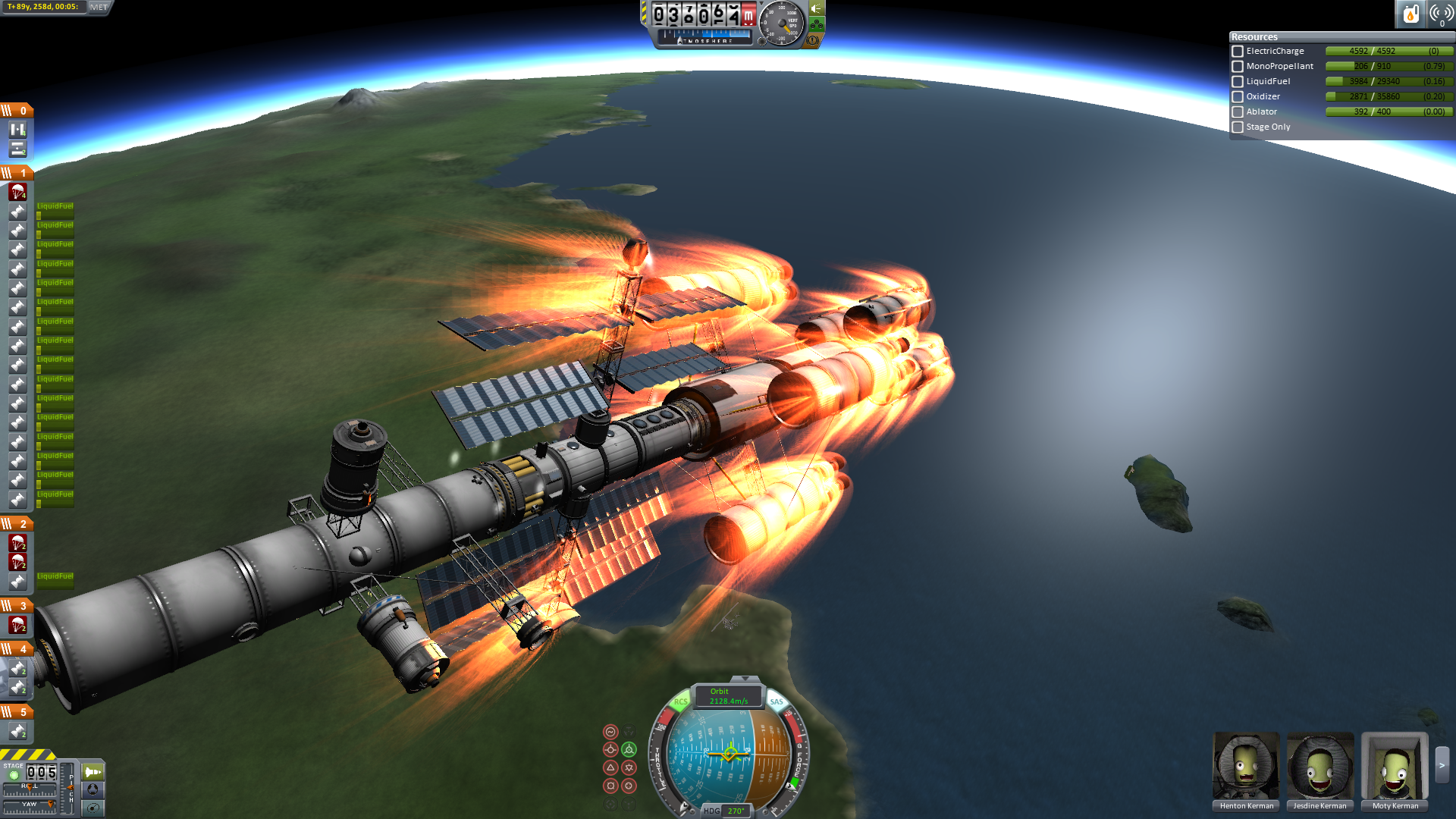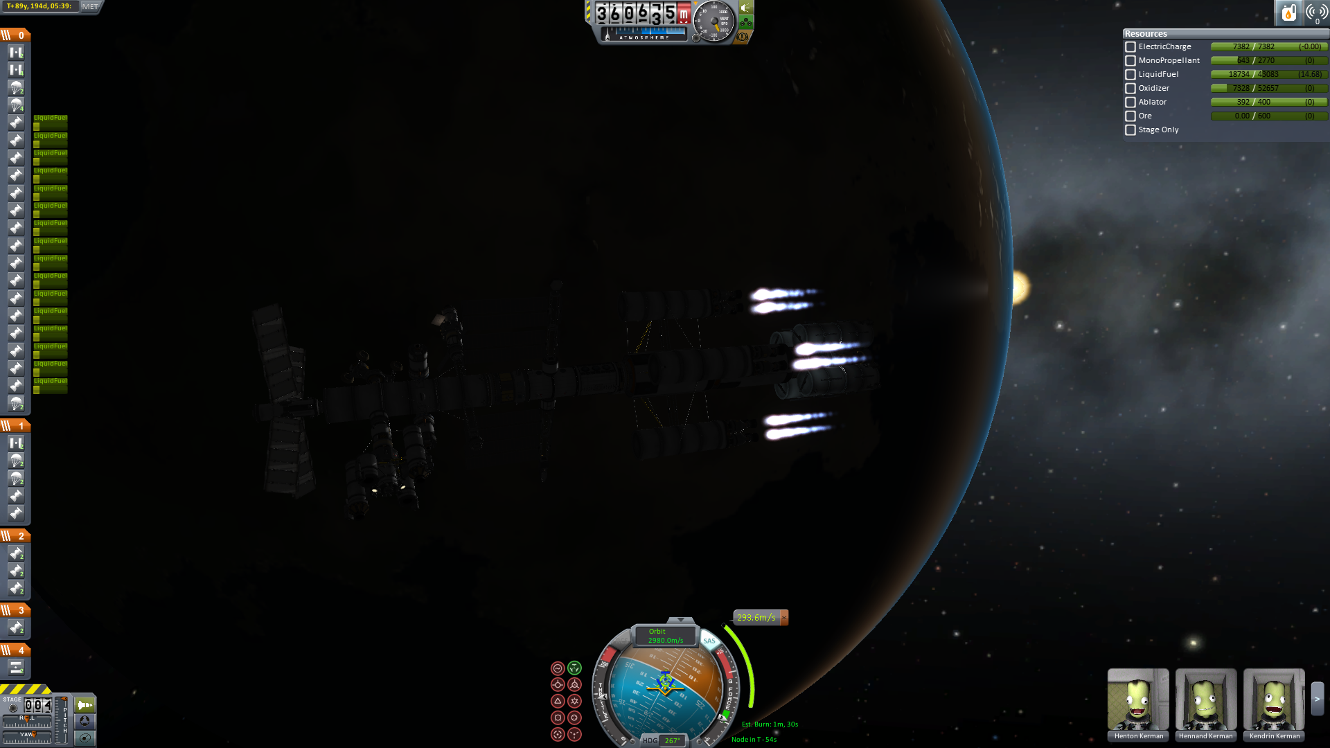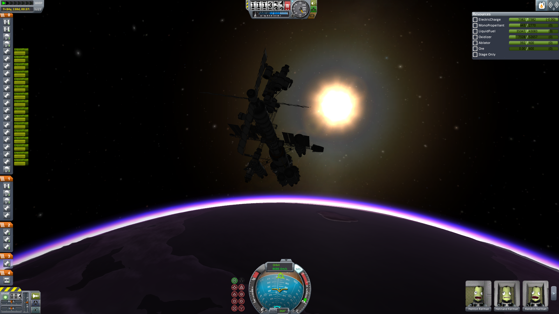 Der Eintritt war ein bisschen gruselig. Man sieht, dass das Schiff nicht wirklich für einen Widereintritt gemacht war. Der Ressourcenlander musste abgetrennt werden, da er drohte das ganze Schiff zu drehen, was ein Auseinanderbrechen zur Folge gehabt hätte. Mit dem Abtrennen der Triebwerksstufe ließ sich der spezifische Luftwiderstand beeinflussen, sodass eine recht präzise Steuerunf möglich war.Anm: Alle IVA-Bilder dienen nur der Illustration und haben keinen Zusammenhang mit den tatsächlichen Ereignissen.