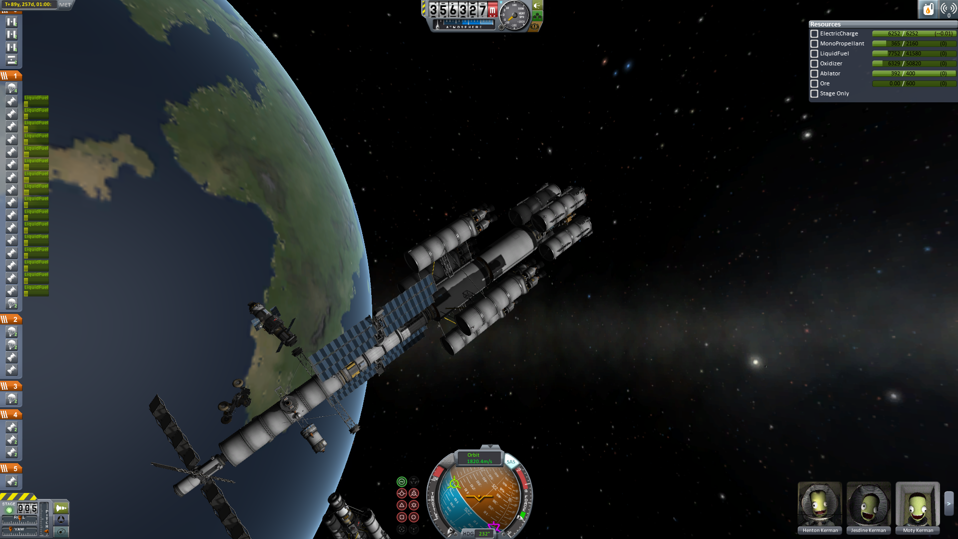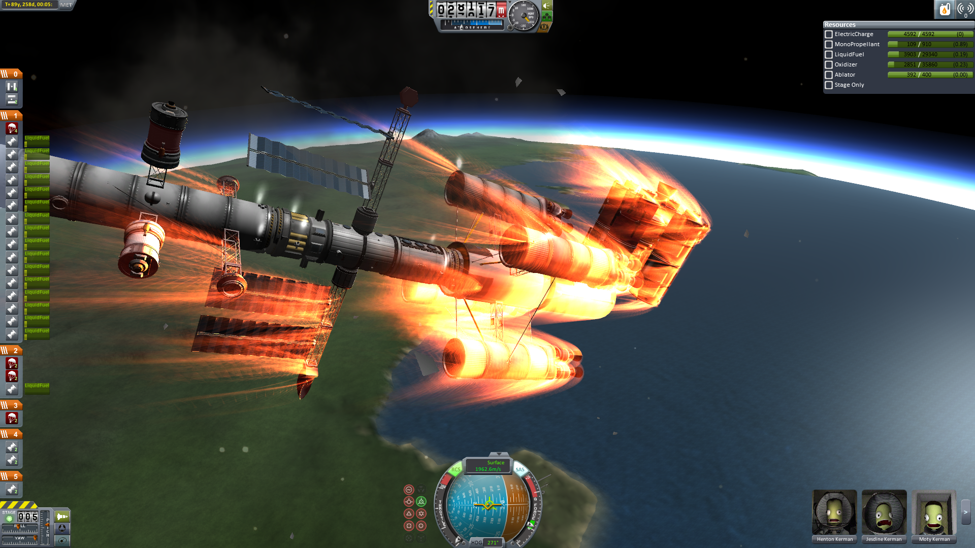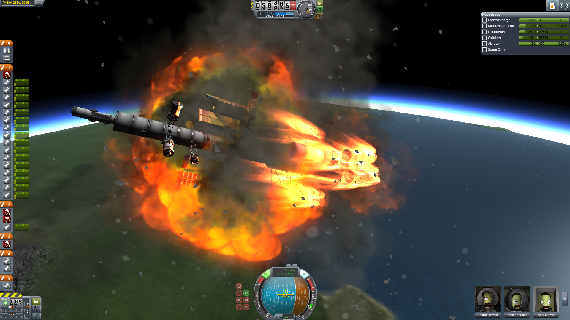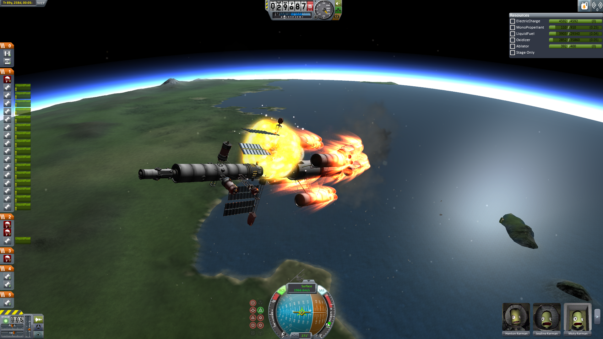 Der Eintritt war ein bisschen gruselig. Man sieht, dass das Schiff nicht wirklich für einen Widereintritt gemacht war. Der Ressourcenlander musste abgetrennt werden, da er drohte das ganze Schiff zu drehen, was ein Auseinanderbrechen zur Folge gehabt hätte. Mit dem Abtrennen der Triebwerksstufe ließ sich der spezifische Luftwiderstand beeinflussen, sodass eine recht präzise Steuerunf möglich war.Anm: Alle IVA-Bilder dienen nur der Illustration und haben keinen Zusammenhang mit den tatsächlichen Ereignissen.