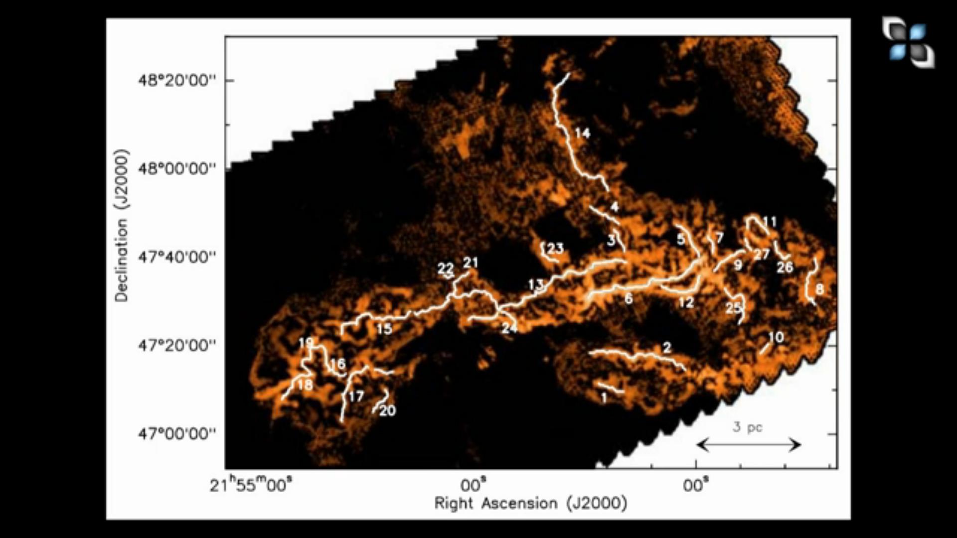 An diesen Stellen wird das Filament durch sein Magnetfeld so stark zusammengedrückt, dass sich ein Stern formt.