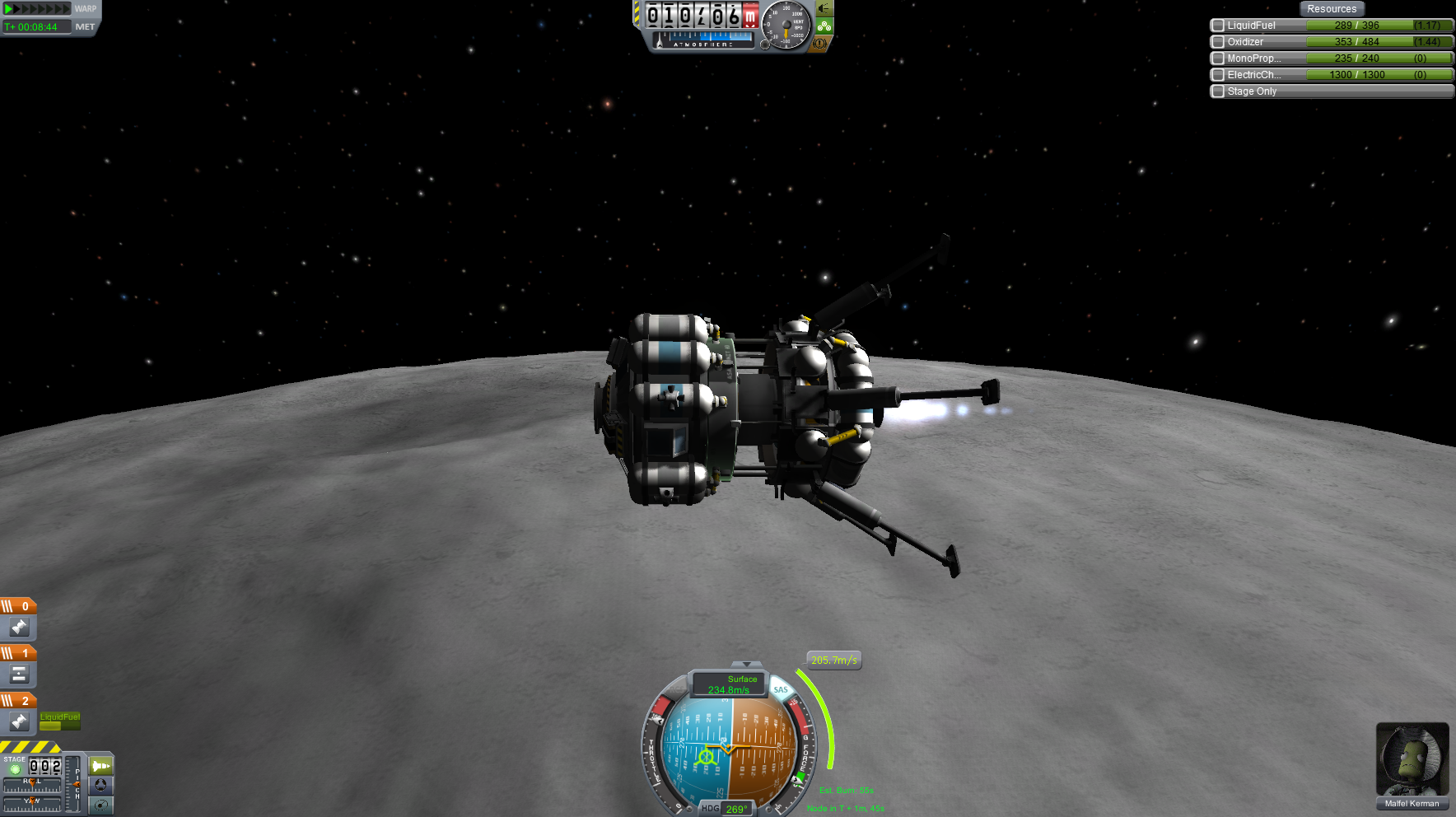 Apollo Mission mit einer 1-1 Masstabs Rakete.. So gut es gegangen ist mit Stock und Inofficellen Modpack gebaut. Bilder vom 2 ten Teil also Landung und Heimkehr werde ich nachreichen den diese war wegen Falscher Höheneinschätzung etwas zu hart. Ansosten sehr solides Teil mit wunderbaren flugeigenschaften. Die Besatzung kann follständig über Leiter die Rakete betreten. Beim ersten flug war noch ein hauch zu wenig sprit im Tank zur rückkehr. Das wird dann noch bereinigt. P.s. der anflugswinkel zum Mond war mies muste ganze 600 Delta V verbraten nur um einschwenken zu könne das geht mormalerweise auch billiger oder?!