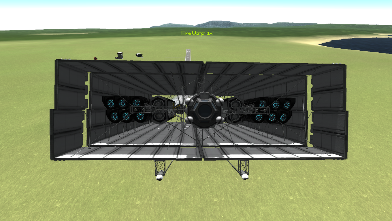 Testflug eines Megashuttles, Stabieler flug leider weicht der Zenter of Mass zu weit nach hinten ab. was leider zu einer Instabilität führte. Dieser Test beweist wieder die Stabilitätsvorteile der Flügelausenhülle.