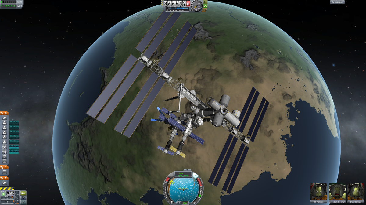 Gut zu erkennen ist der angedockte Raumfrachter Progress und das Sojus TMA Raumschiff.