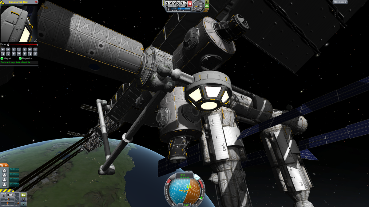 Mit dem Canadarm 2 wird der Cupola Beobachtungsturm an dem Tranquility Modul angebracht.