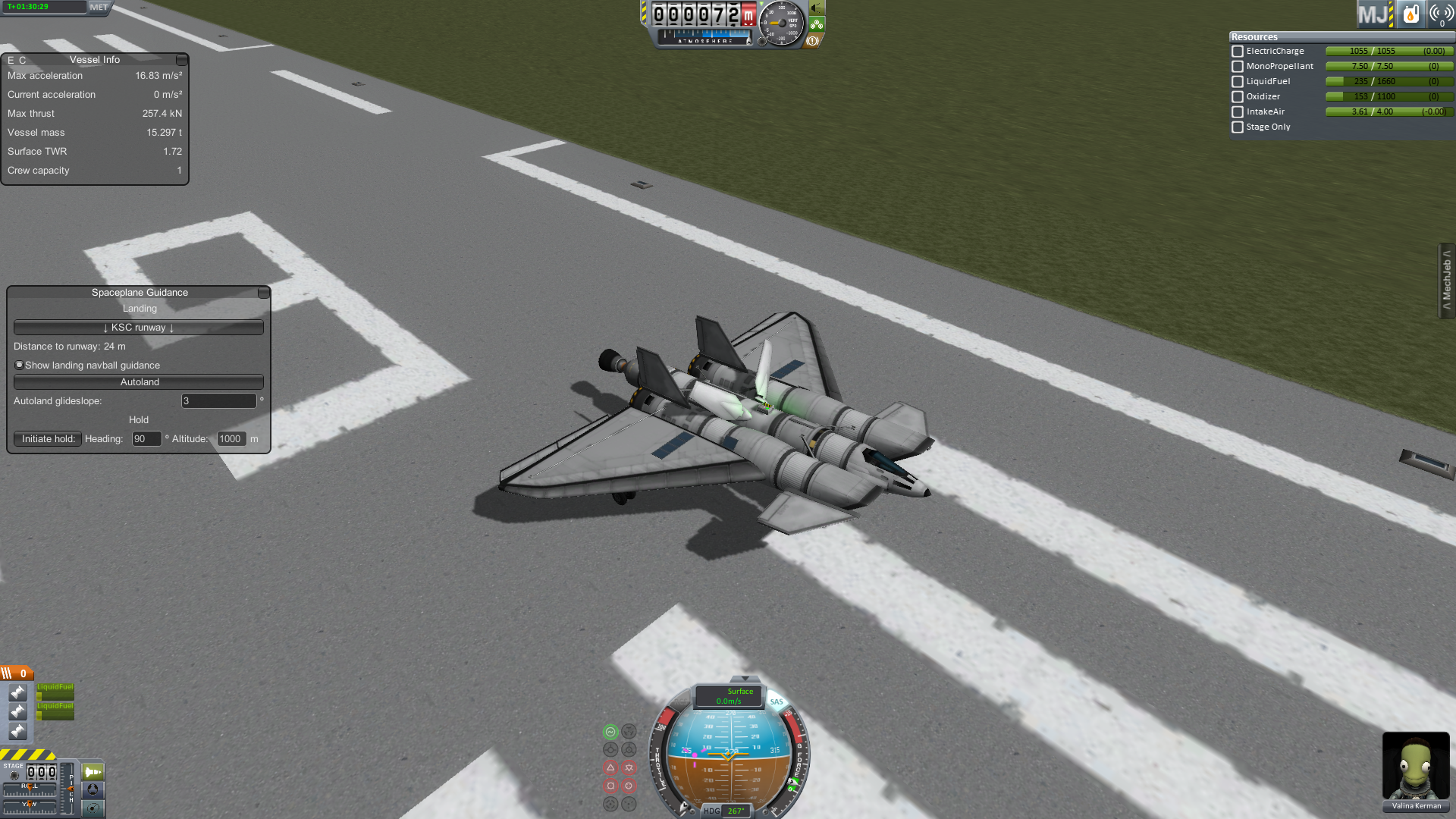 Nach dem 100km Orbit Flug und landung (ziel überschossen und umgedeht um auf der Landebahn zu landen)
