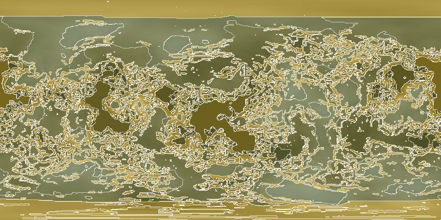 Minmus ist ein hügeliger Mond mit flachen Highland-Plateaus und sehr flachen Methanseen in den Tälern.