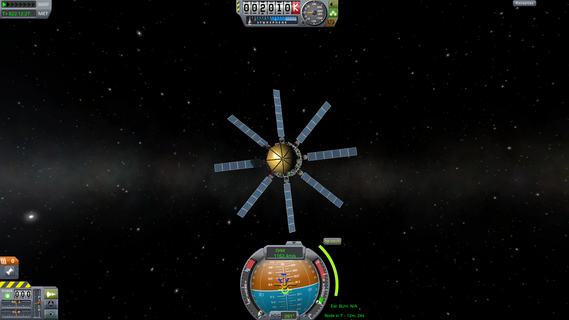 Aus den beiden Zeiten (Est. Burn/Node in T) erkennt man, wann und wie lange man Schub geben muss, bis das Manöver beendet ist. Allerdings wartet man nicht z.B. 10 Minuten bis zum Erreichen des MPs ab und gibt dann 2 Minuten Gas, sondern man beginnt üblicherweise bei der Hälfte der Brenndauer. In diesem Fall währe das dann 1 Minuteb, bevor man den Punkt erreicht bis eine Minute danach. Mit dieser Methode geht es am genausten, wenn man allerdings in einem Sonnenorbit ist und einen anderen Planeten erreichen will, sind mehrere Minuten oder gar Stunden Verspätung nicht so schlimm.