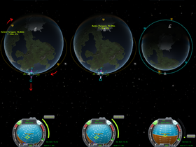 Zieht oder schiebt man an einem Symbol, kann man so den Schub und die Richtung einstellen, in die man fliegen möchte, aus dnen dann automatisch die Brenndauer der Triebwerke und die Richtung berechnet wird. Je stärker man zieht, desto stärker sind die Auswirkungen auf den Zielorbit, wenn man schiebt, funktioniert es entgegengesetzt, aber dafür mit mehr Feingefühl. Anhand des Zielorbits sieht man immer, was man eingestellt hat.