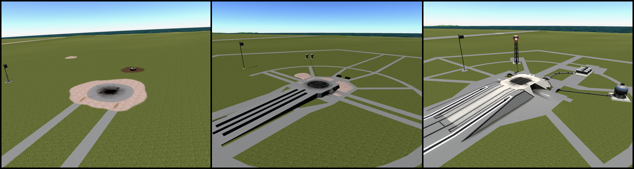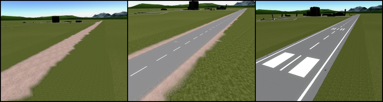 Die Runway wurde zum Starten und Landen von Flugzeugen und Shuttles gebaut. Wie beim Launch Pad kann man gespeicherte Flugzeuge gleich im der Spacecenteransicht starten.