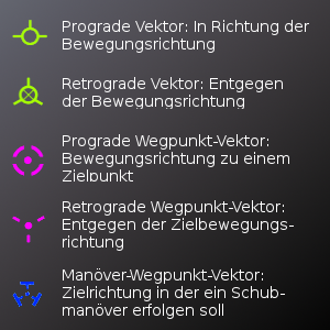 Dabei können Lage (Richtung auf dem Kompass sowie Neigung zum Horizont) sowohl von Flugzeug bzw. Raumfahrzeug als auch von insgesamt 9 verschiedenen Vektoren abgelesen werden.